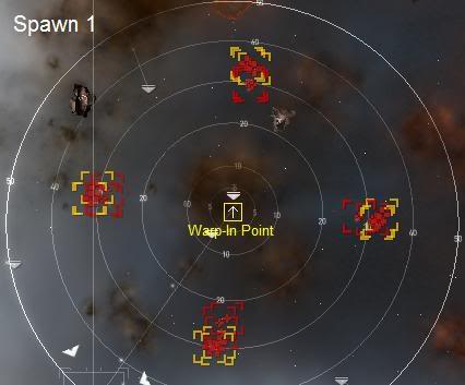 Upon Shooting the Mordus Fleet Commander, there spawns on four sides at 30k from warp-in: