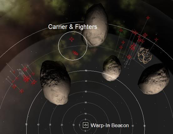 Ships at 65-115k if you warp to 0. Fighters and Carrier aggro at Warp-In. Remaining ships aggro upon your first shot.